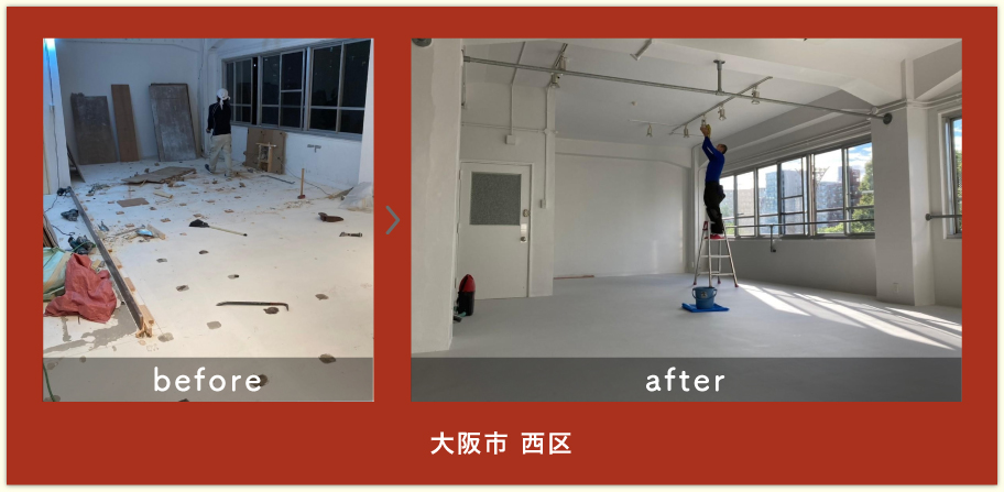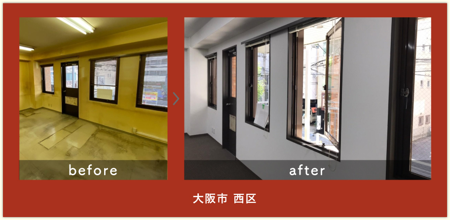 原状回復格安センターさんに原状回復工事をお願いしました。依頼からすぐに現地調査に来ていただき、すぐに御見積を出していただけたので迅速に対応頂けました。見積内容に関しても、不明点や工事項目などを丁寧に説明してもらったので、工事の発注が初めてで不安な部分を解消していただきました。オーナーさんとの交渉や隣のテナントさんとの工事時間の調整などもしていただき、無事にトラブルなく工事が完了できました。